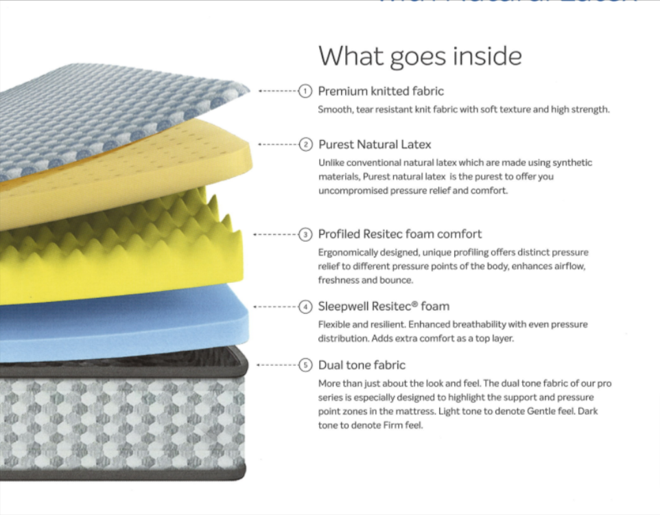 Industry’s purest natural latex. Offers you un-compromised pressure relieving comfort.